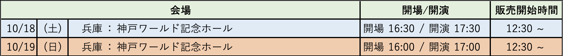 ◎10/18(土)兵庫/神戸ワールド記念ホールより販売開始